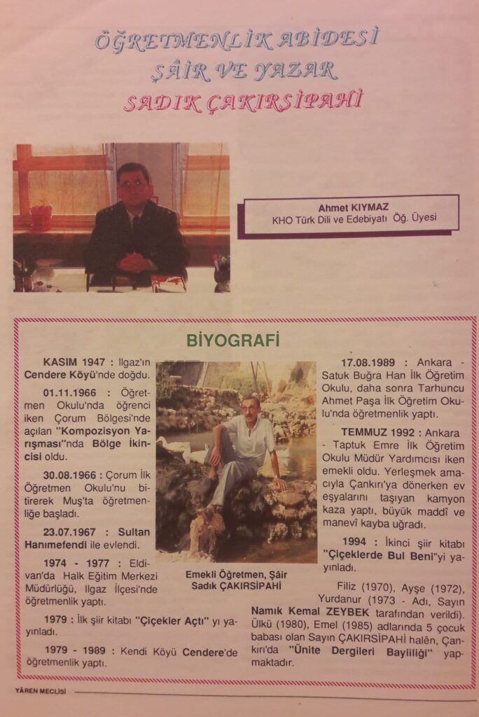 ÇANKIRILI ŞAİR: SADIK ÇAKIRSİPAHİ