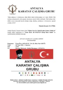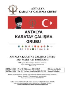 KONFERANSA ÇAĞRI! CANI GÖNÜLDEN DAVETLİSİNİZ…KARATAY ÇALIŞMA GRUBU 2024 MART AYI “SÖYLEŞİ PROGRAMI”…ANTALYA’DA YAŞAYAN DOSTLARIMIZI, DOSTLARI İLE BERABER...