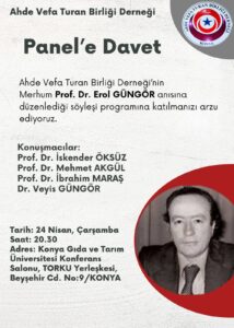 PANELE ÇAĞRI ETKİN DÜŞÜNCE AKADEMİSİ üyesi Harun MARAL‘ın başkanlığını yürüttüğü AHDE VEFA TURAN BİRLİĞİ Derneği‘nin rahmetli Prof....