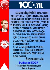 Türk Ocakları Antalya Şubesi, Cumhuriyetimizin 100. kuruluş yıl dönümü amacıyla Türk Dünyası‘ndan gelen konuklarla birlikte CUMHURİYET KUTLAMASI...
