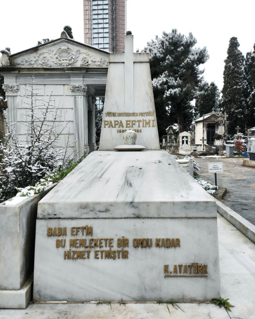Mezarı Şişli Rum Mezarlığı’ndadır. Mezar taşında Atatürk’ün sözü yazılıdır: “Millî mücadelede bize bir ordu kadar yardım etti.”