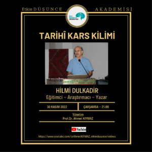 ETKİN DÜŞÜNCE AKADEMİSİ değerli üyesi Eğitimci – Araştırmacı – Yazar Hilmi DULKADİR, “Tarihî Kars Kilimi” konulu bilgilendirme...