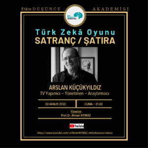 ETKİN DÜŞÜNCE AKADEMİSİ üyesi, Tv. Yapımcı – Yönetmen Arslan KÜÇÜKYILDIZ, “Türk Zekâ Oyunu: Satranç” konulu bilgilendirme yapacaktır....